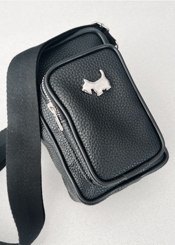 Porta celular confeccionado en simil cuero de excelente calidad ✔️.Cuenta con dos compartimentos con cierre metálico y un aplique metálico de perrito. Correa regulable.
